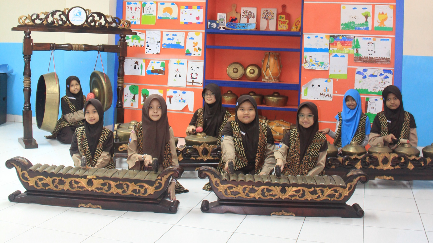 The Gamelan extracurricular activity introduces students to the traditional Indonesian ensemble music made up of percussive instruments such as metallophones, gongs, drums, and bamboo flutes. Rooted deeply in Indonesian culture, especially from Java and Bali, Gamelan teaches students the beauty of harmony, rhythm, and teamwork through music.